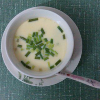 原料:鸡蛋、花甲、葱、温水、盐、味精、糖、芝麻油、姜片。