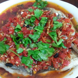 原料:花鲢鱼头、生姜、蒜、香菜、剁椒、生抽、鸡精、蚝油、盐。