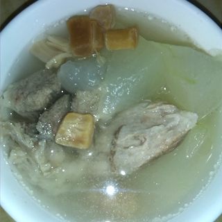 原料:冬瓜、筒骨、干贝、盐、鸡精。