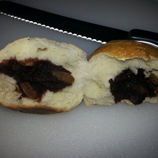 原料:高筋面粉、鸡蛋、牛奶、砂糖粉、盐、酵母粉、奶粉、黄油、红豆馅、葡萄干。