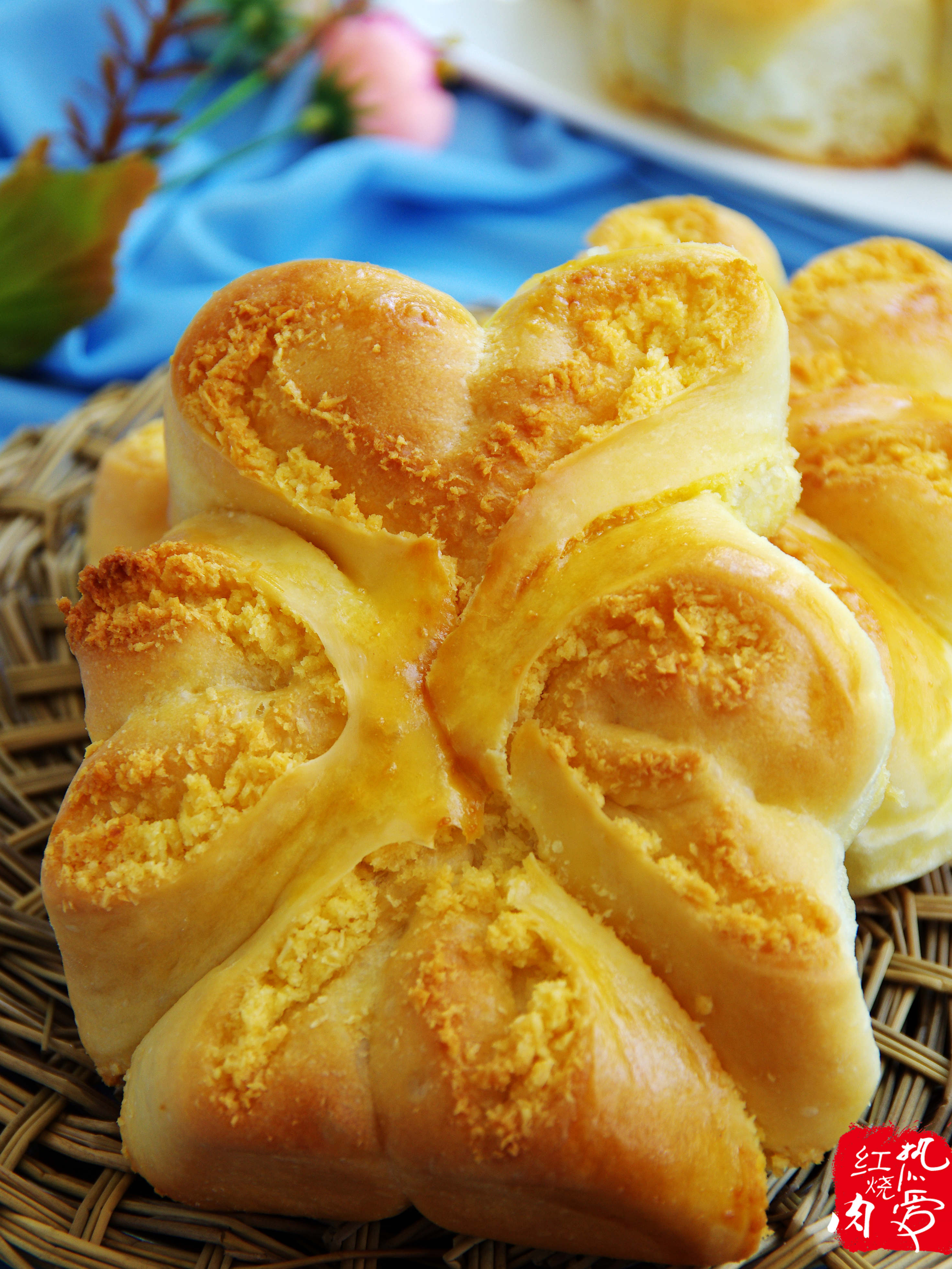 说起椰蓉面包真是惭愧呀,那年买了一斤椰蓉最后扔了半袋子,因为虫子光顾了,后来就一直没再做过,这次的椰蓉买了也有一年了,好歹没开封,所以虫子还没来呢。昨天终于给做了次椰蓉小面包,味道那叫好吃呀,我老公吃了饭一听我说这次做的椰蓉面包好吃,也尝了一个说确实好吃哈哈,我决定哪天再去买它一斤去。这次做的有点失败,本来要做那个花一样的小面包的,结果我300克面粉做六个太多了,导致挤在了一起,最后都成了方的花了哈哈,所以下次还是少做,四个最好,还有就是椰蓉馅儿太湿了,所以造型好了以后太软了,没法往烤盘里拿了都,我给摆的都变形了就,所以椰蓉馅儿放冰箱冷藏一会儿估计会更好操作。不过虽然样子不济但是味道没的说呀,那叫一个香,烤制时屋里也很香呢。