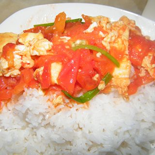 原料:鸡蛋、西红柿、紫葱、糖、盐、淀粉。