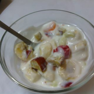 原料:酸奶、香蕉、新鲜大枣、山楂、砂糖桔、小番茄。