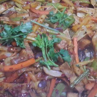 原料:草鱼、土豆、芹菜、胡萝卜、洋葱、尖辣椒、豆腐皮、鱼豆腐、郫县豆瓣、料酒、酱油、盐、鸡精、孜然粒、蒜蓉辣酱、葱、姜、蒜、胡椒粉。