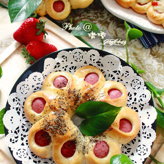 原料:高筋粉、低筋粉、快速干酵母、盐、糖、奶粉、全蛋液、温水、黄油、开水。