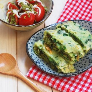 原料:面粉、木耳菜、鸡蛋、肉松、千岛酱、水、盐、油。
