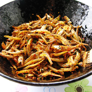 原料:海蜒、辣椒面、花椒面、小葱、姜蒜末。
