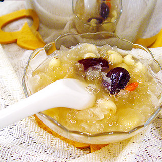 原料:银耳、莲子、大枣、冰糖、枸杞。