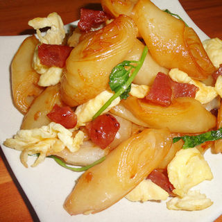 原料:腊鸭腿、凉瓜、酱油、豆豉、蒜粒。