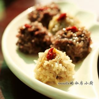 原料:猪肉、莲藕、香菇、大葱、料酒、鱼露、盐、糖、淀粉、黑胡椒粉、五香粉、油。