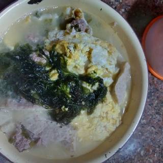 原料:鸡蛋、紫菜、肉嘎、肉末、蒜头油。