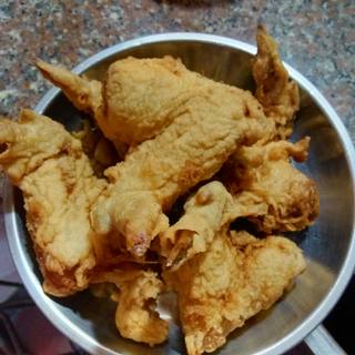 原料:鸡翅、大蒜、面粉、香料、鸡蛋。