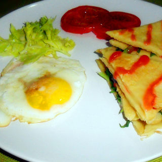 原料:鸡蛋 、面粉、火腿、生菜、炼乳、番茄酱、胡椒、食用油。