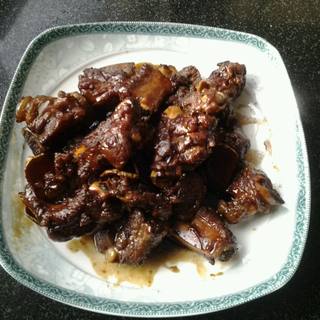 原料:子排、生姜、生抽、老抽、料酒、白糖、盐、油。