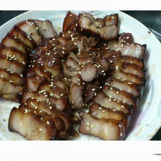 原料:五花肉、玫瑰露酒、生抽、蚝油、南乳、孜然粉、糖、盐、蜜糖。