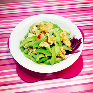 原料:苦瓜、鸡蛋、料酒、小米椒、盐、鸡精。