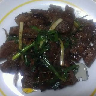 原料:猪肝、姜、葱、蚝油、生抽、鸡精、糖、料酒。