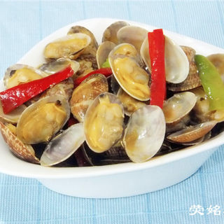 原料:花蛤、红椒、青椒、大蒜、姜、酱油、盐、淀粉、花生油。