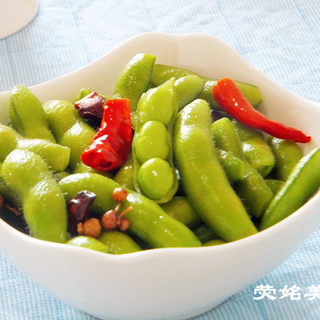 原料:毛豆、盐、花椒、大料、干辣椒。