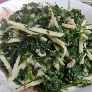 原料:荠菜、冬笋、肉丝、盐、鸡精、糖。