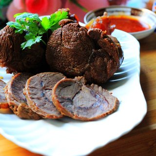 原料:金钱牛腱子、草果、八角、香叶、小茴香籽、花椒、桂皮、干辣椒、老姜、大葱、花雕酒、水、卤水汁、黄豆酱。