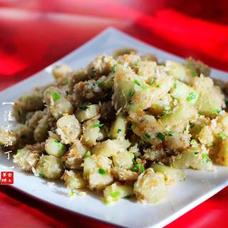 原料:茄子、面包糠、小葱、蒜子、欧芹、油、盐。