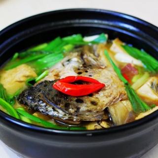 原料:三文鱼头、金华火腿、老豆腐、青蒜、小米椒、油、盐、柠檬汁、花雕料酒、老抽、黑胡椒粉。