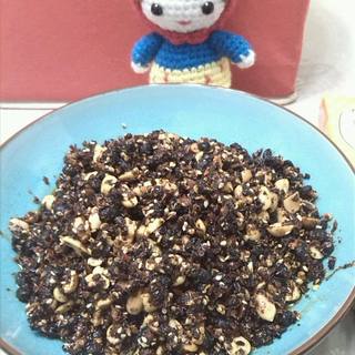 原料:豆豉、干红辣椒、烤熟花生、花椒、蚝油、老抽、味精。