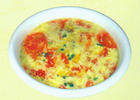 原料:肉脂豆腐、松花蛋、小葱、鲜红辣椒、盐、味精、香油。