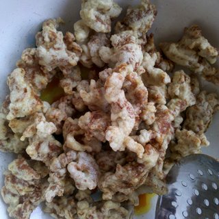 原料:猪里脊、鸡蛋、马铃薯淀粉、料酒、盐、十三香。