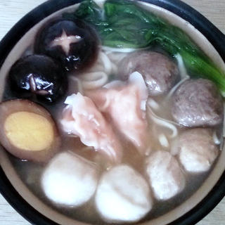 原料:手工面、丸子、青菜、金针菇、香菇、浓缩鸡汁、浓缩高汤。