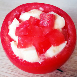 原料:番茄、水煮蛋、沙拉酱、白糖。