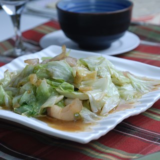 原料:包菜、五花肉、蒜、香芹菜、盐、蚝油、鸡粉、生粉、糖。