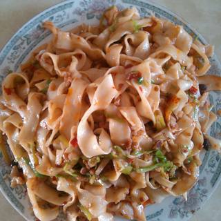 原料:手擀面、肉末、辣椒酱、料酒、酱油、鸡精、盐。