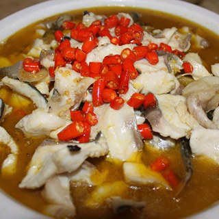 原料:胖头鱼、酸菜、葱、姜、蒜、小红辣椒、白胡椒粉。
