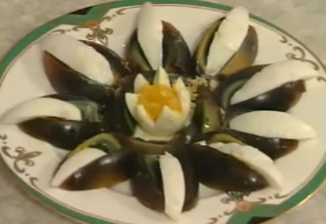 原料:变蛋、鸭蛋、青椒、醋、干辣椒、花椒、蒜、酱油。