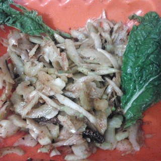 原料:萝卜秧、油、面粉、盐。
