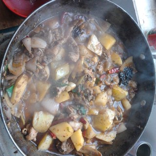 原料:鸡、土豆、洋葱、青红辣椒、葱、姜、蒜、啤酒、豆瓣酱、糖、八角、桂皮、茴香、盐。