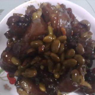 原料:猪手、青豆、盐、八角、姜、冰糖、生抽、老抽、橄榄油。