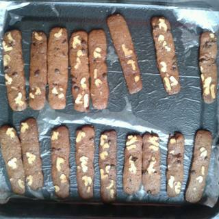 原料:黄油75克、低粉120克、鸡蛋1个、糖粉50克、核桃50克、泡打粉8分之1小勺。