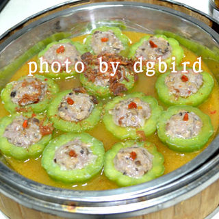 原料:凉瓜、肉酱、杞子、蟹黄酱、XO酱。