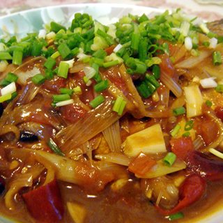 原料:金背红丝鱼、番茄、大葱、大蒜、小葱、姜丝、豆豉、干辣椒、淀粉、生抽、陈醋、料酒、白糖、花生油、小磨香油。