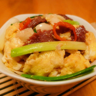 原料:牛肉片、鸡蛋、青蒜、蒜、生抽、料酒、生粉、糖。