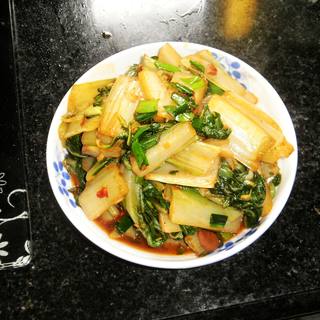 原料:牛皮菜、生姜、大蒜、油、盐、味精、豆瓣、葱。