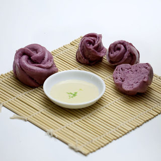 原料:紫薯、低筋面粉、酵母、温水、糖。