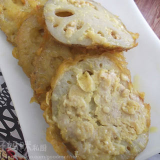 原料:脆莲藕、猪肉、面粉、土鸡蛋、姜、蒜、生抽、醋、盐。