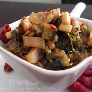 原料:酸菜、五花肉、姜、蒜、干辣椒、自制豆瓣酱。
