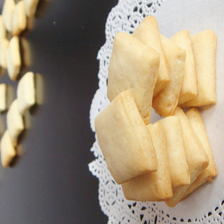 原料:低筋面粉、奶粉、鸡蛋、牛奶、黄油、糖粉。