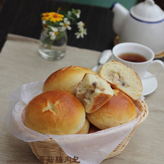 原料:高筋面粉、牛奶、鸡蛋液、黄油、白砂糖、盐、酵母、鸡蛋液、蘑菇、鸡肉、小洋葱、牛奶。