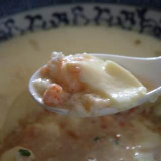 原料:虾仁、土鸡蛋、姜末、盐、冷开水、蒸鱼豉油、葱花。
